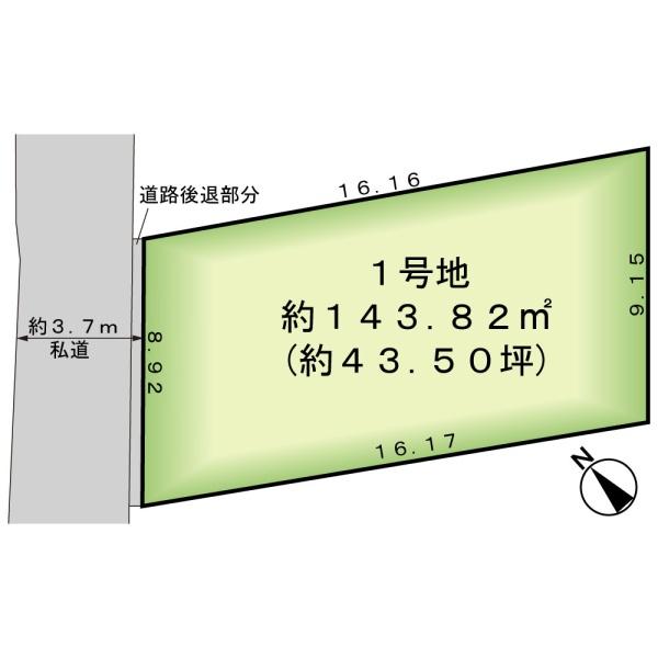 | 土地面積 | 143.82m² 公簿 (セットバック8.92m²) | ||