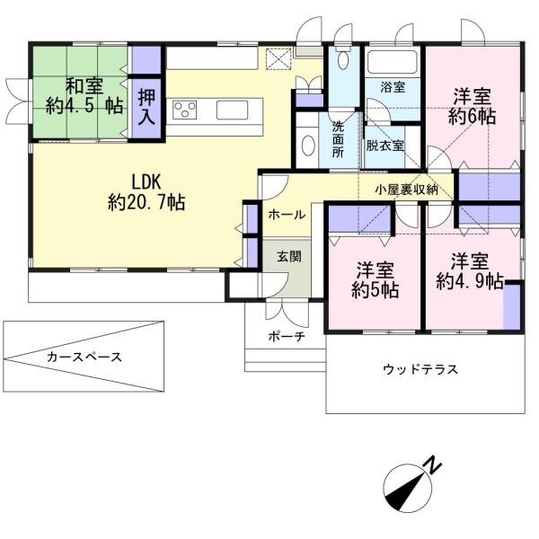 敷地62坪!専有面積(100平米超)カーポート、ウッドテラス付4LDK