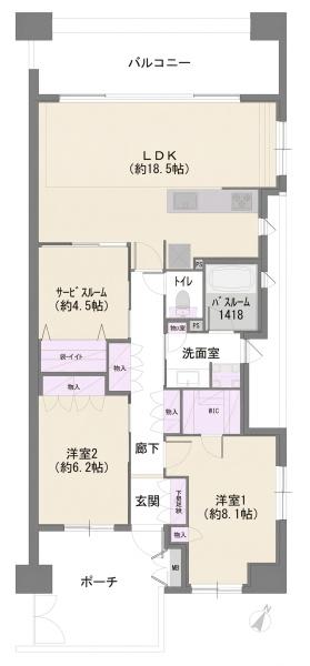 専有面積(85平米)ゆとりある居住空間