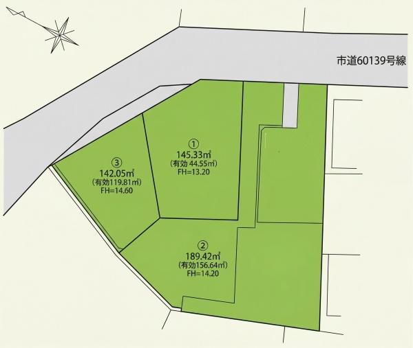 ▽東武野田線《新柏》駅徒歩12分、完成宅地渡し全3区画